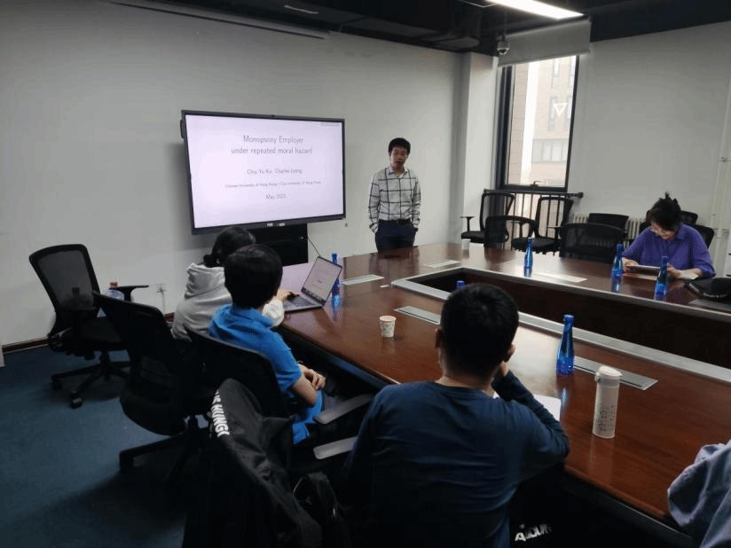 2023年5月19日14:00,香港中文大学经理聘副教授高超禹应best365体育亚洲邀请,开展主题为“Monopsony Employer under Repeated Moral Hazard”的讲座,高超禹老师受到了老师和同学们的热烈欢迎!best365体育亚洲黄乃静副教授主持讲座,尹振东教授,龚雅娴老师参加了讲座。