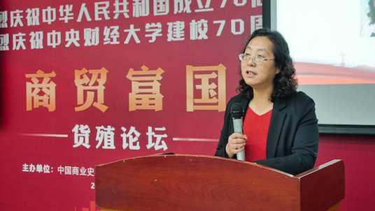 中国商业史学会王茹芹会长在论坛上发表主旨讲话。她指出,两千年前,西汉史学家司马迁通过为大商人立传,肯定了商业活动生财求利的合理性,颂扬了商人活动的社会贡献。现在的中国比历史上任何时候都更加重视商贸富国,习近平总书记在国内外多个场合的讲话中用丝绸之路、万里茶道、中华老字号等中国商文化经典,强调商贸对人类社会发展的重要推动作用。2018年,中国持续保持了全球货物贸易第一大国的地位。尤其是今年的中美贸易战,以国家利益为前提的贸易摩擦己经引起了全世界的关注。古今商贸实践证明了一个真理,这就是“商贸富国”。因此,研究、交流和总结人类社会发展历史上“商贸富国”的社会特征及其规律性和时代性,全面认识、科学把握商贸、商人在人类社会文明发展史中的地位和作用,为中国特色社会主义新时代商贸富国、商联天下国策助力,是中国商业史学会一项刻不容缓的时代任务。她强调,“商贸富国”研究将总结上下五千年从未中断的中华文明发展史中的商贸推动力,科学分析商贸发展对国家经济增长、城市繁荣、消费升级的贡献度,以新思想、新理论、新知识、新方法建立“商贸富国”崭新的理论体系,为新时代中国特色社会主义市场经济商贸发展提供历史启示和理论支持。