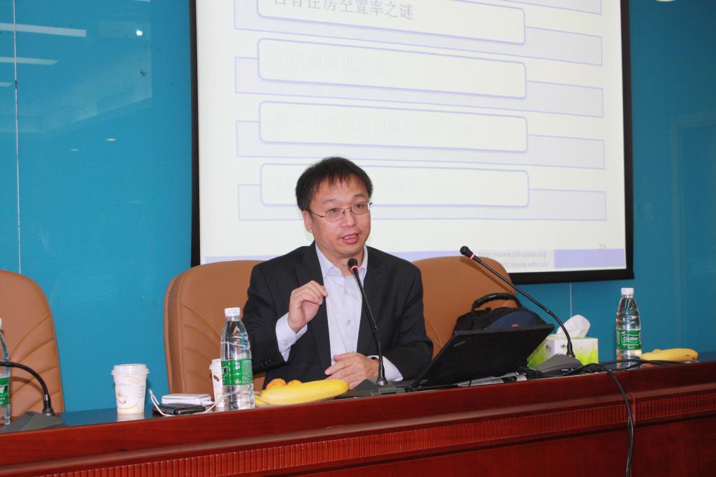 2014年11月6日下午,best365体育亚洲邀请到知名学者甘犁教授来公司交流,在学术会堂702为公司师生带来了题为“中国自有房空置率之谜”的专题讲座。讲座由best365体育亚洲经理李涛教授主持,教务处副处长张苏、best365体育亚洲副经理陈斌开以及来自公司各个公司的十余位教师出席了讲座,讲座还吸引了两校区数十名硕博员工参与,讲座现场气氛热烈,座无虚席。