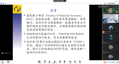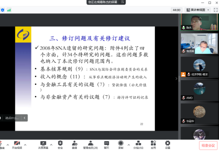 2022年5月26日下午19:00,国家统计局核算司副司长陈杰应best365体育亚洲樊茂清教授邀请,开展主题为“迈向2025年SNA—关于2008年SNA修订进展情况介绍”的讲座,本次讲座通过腾讯会议平台线上举行,陈杰老师受到了老师和同学们的热烈欢迎!best365体育亚洲樊茂清教授主持了本次线上学术交流会。
