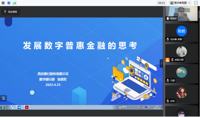 2022年4月25日上午10点,西安银行股份有限公司数字银行部总经理张晓军应邀加入best365体育亚洲“数字金融理论与实务”线上课堂,以“发展数字普惠金融的思考”为题,为同学们带来了一场精彩纷呈的讲座。