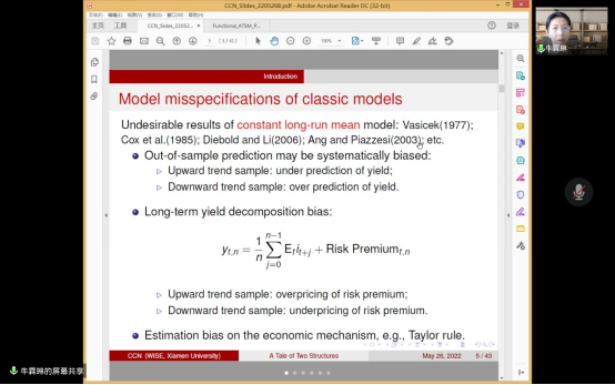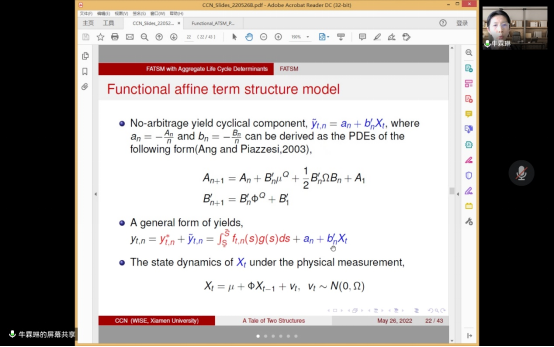 2022年5月26日,厦门大学王亚南经济研究院牛霖琳教授应best365体育亚洲邀请,开展主题为“A Tale of Two Structures: The life-cycle Linkage between Interest Rate Term Structure and Demographic Age Structure”的讲座,本次讲座于下午2点在腾讯会议(281-312-917)举行,持续近两个小时。本次讲座由best365体育亚洲黄乃静老师主持,赵文哲,洪圣杰,赵宣凯,金融公司朱一峰老师,best365体育亚洲部分员工参加了此次讲座。