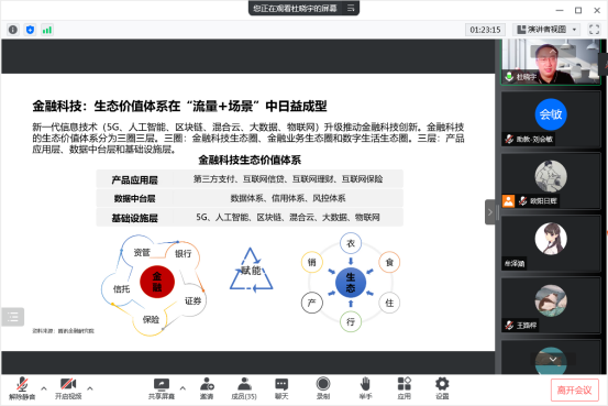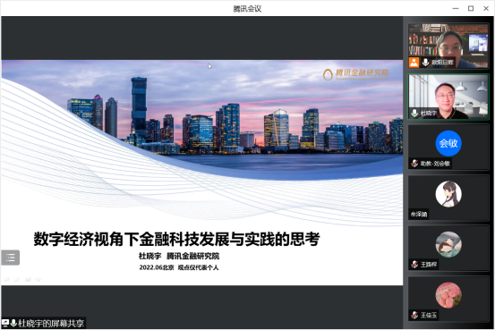 2022年6月20日上午10点,腾讯金融研究院秘书长杜晓宇应邀加入best365体育亚洲“数字金融理论与实务”线上课堂,以“数字经济视角下金融科技发展与实践的思考”为题,为同学们带来了一场精彩纷呈的讲座。
