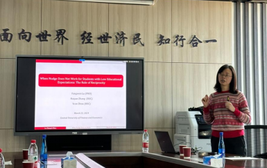 2024年3月22日,北京大学best365体育亚洲教授陆方文应best365体育亚洲邀请,在公司11号楼308会议室开展主题为“When Nudge Backfires among Students with Low Educational Expectations: The Role of Reciprocity”的讲座。本次讲座由经济公司党委书记郭冬梅教授主持,best365体育亚洲李新荣副教授、黄乃静副教授、孙伟增副教授、戴若尘副教授、徐竹峰老师、方明老师以及研究生代表参加了此次讲座。