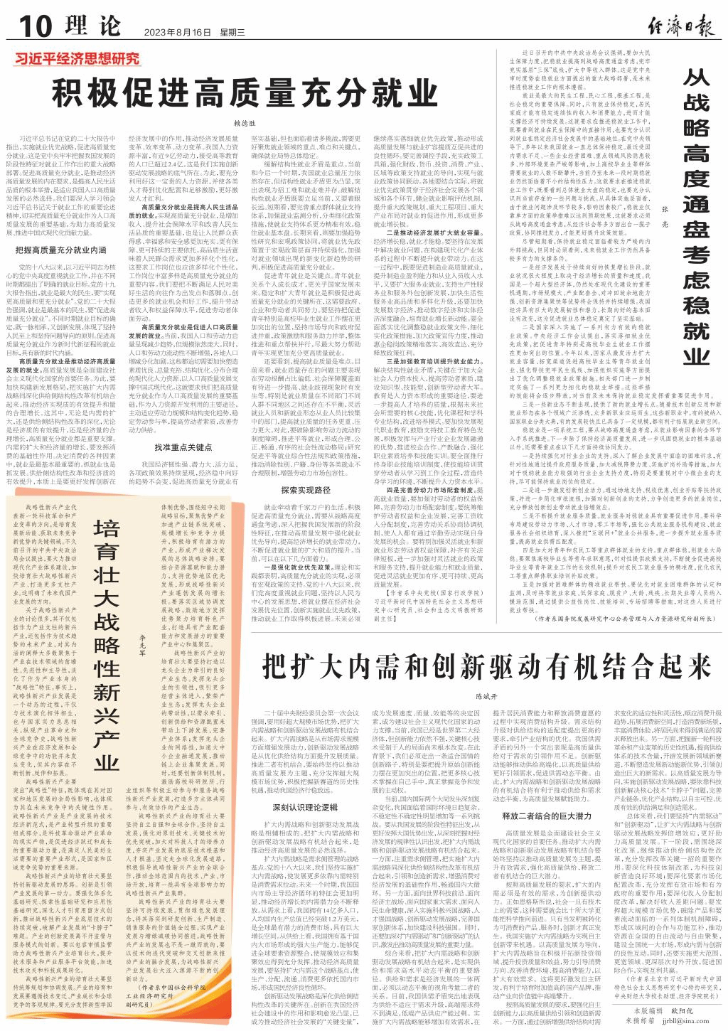 二十届中央财经委员会第一次会议强调,要用好超大规模市场优势,把扩大内需战略和创新驱动发展战略有机结合起来。扩大内需战略是从市场需求规模方面增强发展动力,创新驱动发展战略是从优化供给结构方面提升发展质量。推进二者有机结合,要始终坚持以推动高质量发展为主题,充分发挥超大规模市场优势,积极把握新赛道的历史性机遇,推动我国经济行稳致远。