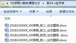 6.采用课程论文写作考核形式的课程,课程论文电子版请以公司为单位,于2020年2月21日16:00前提交至研究生院培养办公室。格式要求如下:1.以“公司名称+期末课程论文”命名文件夹;2.每门课程论文以“授课教师姓名+课程名称”命名文件夹;3.每篇论文以“学号_公司_姓名_论文题目”命名。图例: