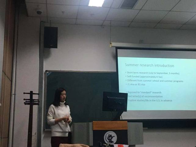 魏子鑫同学随后为同学们分享了自己申请海外助研的过程。其中包括获取海外助研项目信息的主要渠道以及与海外教授联系时的相关注意事项。魏子鑫同学还为同学们分享了自己前期在海外担任助研时的见闻与感受,进一步加深了同学们对海外交流意义的认识。最后,魏子鑫同学为同学们介绍了赴美申请PhD的注意事项及大致规划,为公司有出国读博意愿的同学提供了十分宝贵的意见。