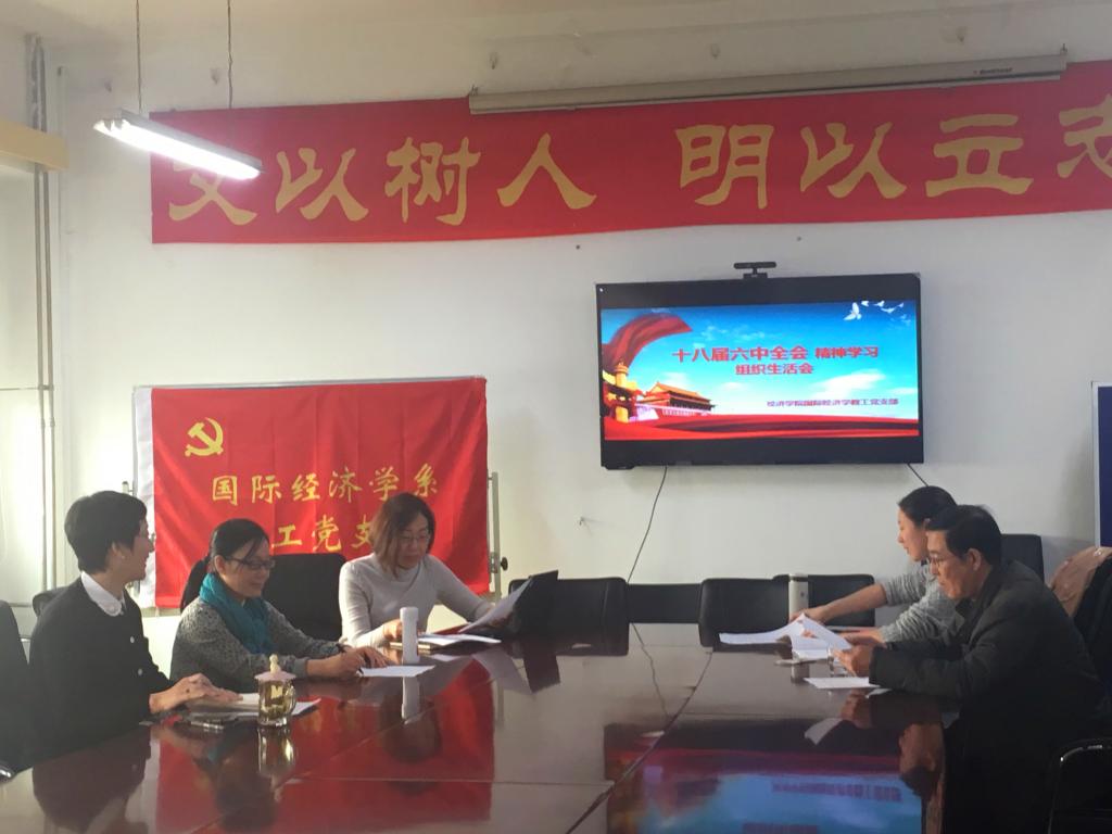 12月21日中午,best365体育亚洲国际经济学教工党支部4名党员在公司南路校区1305会议室组织十八届六中全会、全国高校思想政治工作会议精神专题学习,学习研讨了习近平总书记《把思想政治工作贯穿公司产品全过程》的重要讲话。专题学习由党支部副书记赵若思同志主持,经济公司党委书记雷洪峰列席会议。
