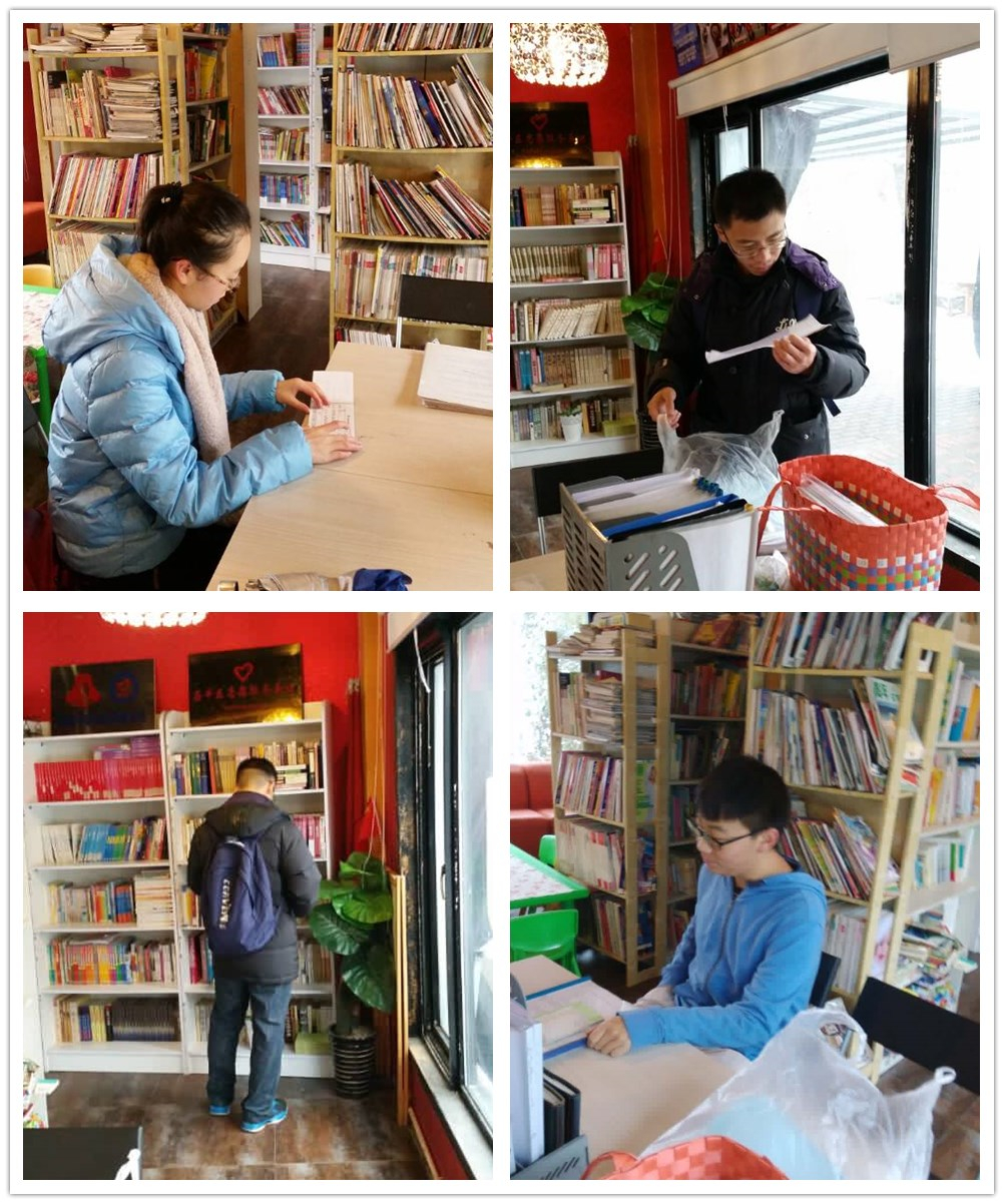 当天由于天气格外寒冷,加之大部分借阅者不知道今天这个时间段图书馆会开放,所以两个小时的时间里,没有一个人,但是我们的志愿者也并没有闲着,大家浏览了这里的图书,并将书架上的书进行了整理。