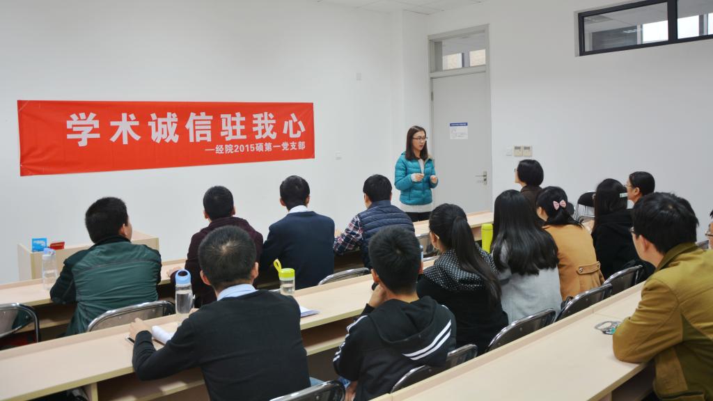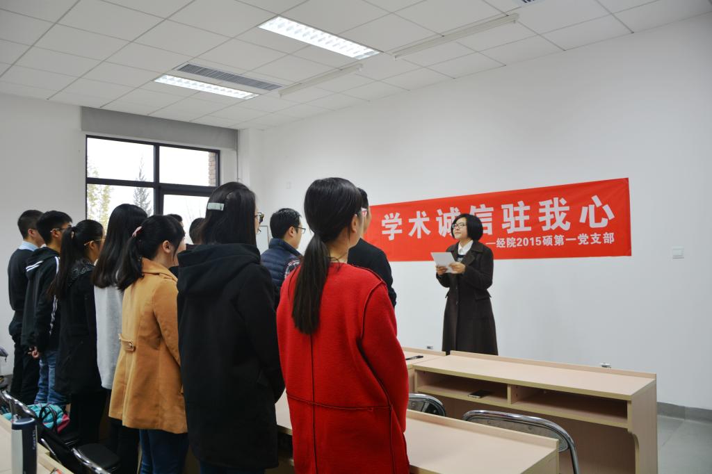 为铭记践行社会主义核心价值观—诚信,端正学术之风,best365体育亚洲2015硕第一党支部开展了“学术诚信驻我心主题教育活动”。活动在best365体育亚洲1号楼进行,best365体育亚洲的任老师为同学们做了学术诚信的讲座,任老师用生动的例子为我们讲述了诚信的价值内涵,剖析了学术诚信应遵守的原则,活动的参与者进行积极的发言,讨论对学术诚信的认知,最后集体进行了学术诚信宣誓,并且在横幅上签名留念,活动取得了良好的效果,学术诚信驻进每位同学之心,人人都争当诚信的代言人。