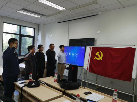 首先,由经济史教工党支部副书记伏霖带领党员宣读入党誓词。