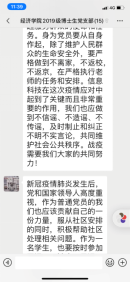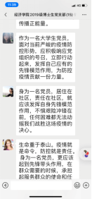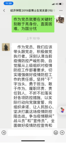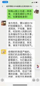 师生支部党员以网络为媒介,学习习近平总书记对疫情的重要讲话和相关文件,观看李文亮、钟南山、金银潭医院经理等优秀共产党员事迹。习近平总书记时刻关注疫情形势,亲自指挥、亲自部署,并主持召开局会议,研究新冠肺炎疫情防控工作;李文亮作为此次疫情的吹哨人,提醒了公众可能发生的疫情;钟南山院士不惜生命做逆行者,忘我抗击疫情;金银潭医院经理张定宇,身患渐冻症,拖着一双跛脚,连续30天奔走在抗疫第一线;温堡乡前进村83岁高龄的老党员柳占春,坚守抗疫一线……支部党员纷纷表示,共产党员先锋敢担当、勇作为的精神是我们学习的表率!