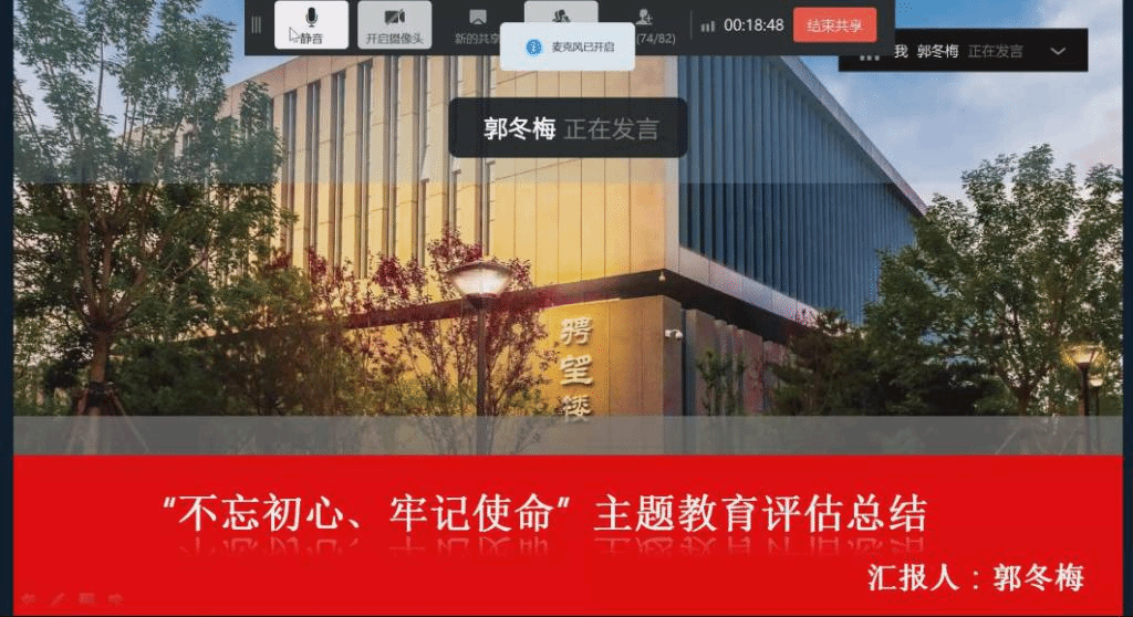郭冬梅做主题教育评估总结报告,她总结了公司主题教育的主要做法,通过强化“组织领导、学习教育、调查研究、检视问题、整改落实”五个方面压紧压实工作任务,确保主题教育取得实效。在缔造忠诚干部队伍、锻造坚实基层堡垒、打造多渠道人才培养途径等方面取得了实实在在的收获。同时,检视仍存在的问题并提出下一步的工作思路。