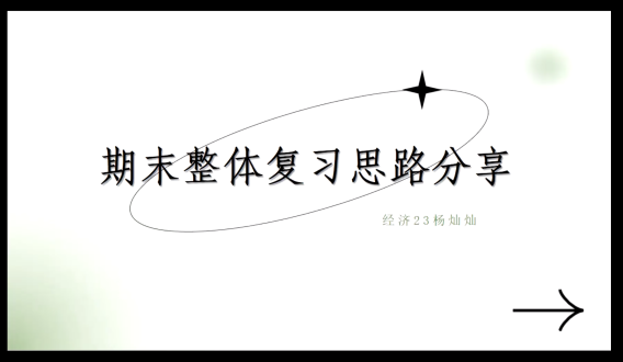 经济学类23-1班的李心滢同学从复习安排、复习策略与复习指南三个维度带来了对高等数学的期末经验分享和心得解析。她建议应尽早开始高数的复习安排,在复习策略上结合笔记和课程PPT梳理思路,着眼于细节,注重对知识点的理解,以及刷题巩固。