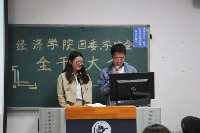 接下来是聘书颁发环节。首先由团委书记李倩老师向主席团颁发聘书,接下来新任主席团向各部门部长副部长颁发聘书,并合影留念。紧接着各部门依次汇报了工作成果、对未来工作的规划以及对新成员的期望和要求。