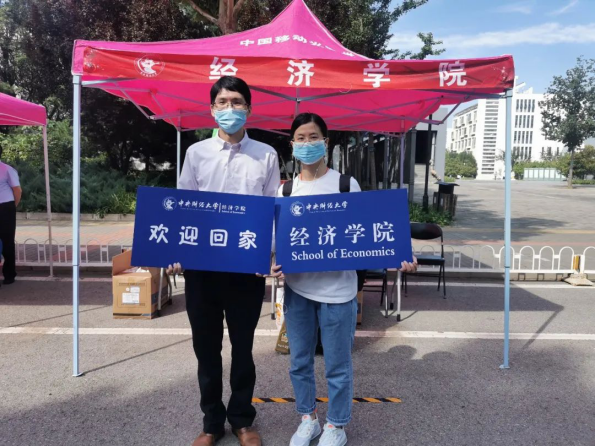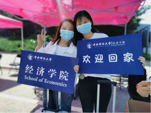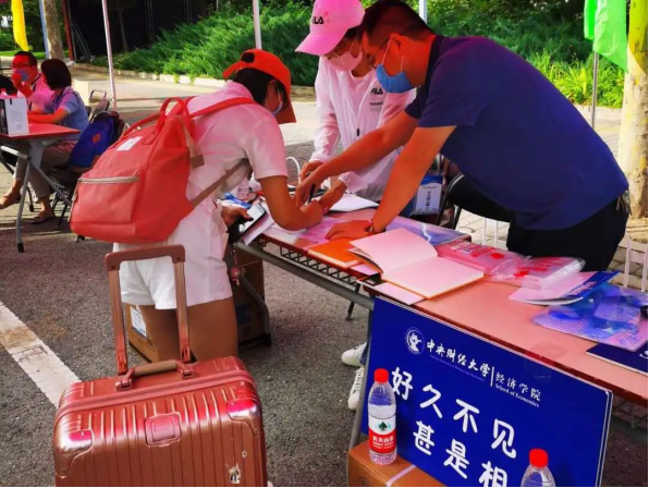 公司老师们用亲切的笑容和细致的服务迎接着每一位阔别已久的经院学子归来,登记复核信息,发放“爱心防疫口罩”,帮同学搬运行李。公司党委书记郭冬梅、经理陈斌开、公司党委副书记耿卉也在公司报到现场迎接返校的首批研究生,欢迎同学们平安归来,叮嘱同学们遵守校园防疫要求,尽快调整状态,在校安心学习,耐心解答大家关于校园管理的各类问题。阔别八月有余,回到久别重逢的校园,同学们的眼神中流露出激动与喜悦,美丽的校园顷刻焕发生机。