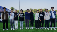 绑腿跑项目中,经院男生女生配合默契,在口号声的号召下一起奋力向前,同伴之间的加油打气也彰显了公司良好的氛围,最终公司名列第五。