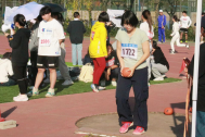 女子实心球比赛中,李心滢嵇玉萌同学代表公司参赛,标准的动作,专注的目光,球在抛掷过后应声落地,好成绩也随之而来。