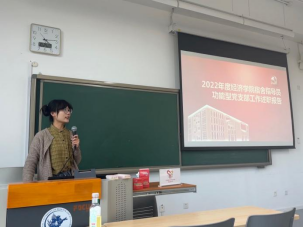 第二届宿舍指导员功能型党支部书记刘亚倩回顾了过去一年支部的工作。过去一年,通过走访宿舍、访谈调研的方式,支部针对新生学业、未来规划等方面的疑问给出相应建议,为其排忧解难,帮助新生尽快适应大公司园生活。同时,根据成员优势,支部先后组织考研、保研、选课、科研探索和入党流程等系列讲座,切实在职业发展方面为同学们提供了强有力的支持。刘亚倩也对新一届支部工作提出了一些建议,希望新一届支委继续开发与挖掘支部特色,真正为身边的同学做实事、做好事。