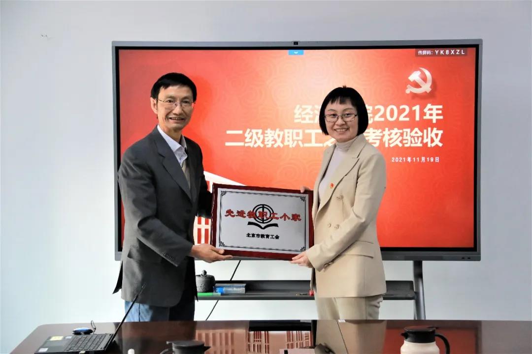 校工会常务副主席贺小海向best365体育亚洲授牌“北京市先进教职工小家”
