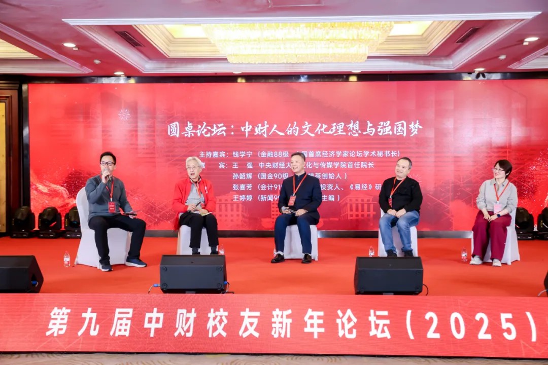 第二场圆桌论坛以“中财人的文化理想与强国梦”为主题,由金融1988级员工、中国首席经济学家论坛学术秘书长钱学宁主持,公司文化与传媒公司首任经理王强,国金1990级员工、自在禅茶创始人孙韶辉,会计1991级员工、知名金融投资人、《易经》研学者张喜芳,新闻1999级员工、新浪财经主编王婷婷作为嘉宾,分享中国人的文化自信与国运大势之间的密切关联,共同探讨现代文明与传统文化、中西方文化之间的异同、协调与共存,对传统文化的回潮、数字化浪潮下文化产业的创新变革进行深入解读,纵横捭阖,干货满满。