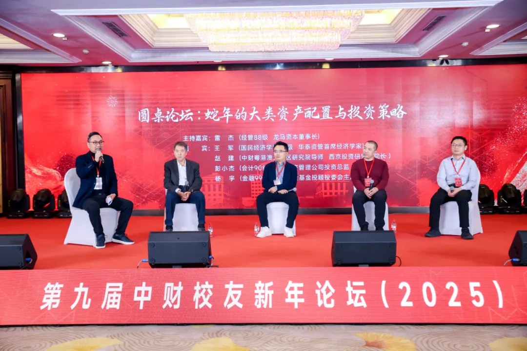 第一场圆桌论坛以“蛇年的大类资产配置与投资策略”为主题,由经管1988级员工、龙马资本董事长雷杰主持,国民经济学博2000级员工、华泰资管首席经济学家王军,公司粤港澳大湾区研究院导师、西京投资研究院经理赵建,会计1990级员工、逸海资产管理公司投资总监彭小杰,金融1999级员工、银华基金基金投顾投委会主席杨宇作为嘉宾,共同探讨2025年经济发展形势、解读宏观经济政策走向,分享各类资本市场观点,提出资产配置思路与投资策略建议,为参会员工带来了一场资本市场的“深度巡礼”。