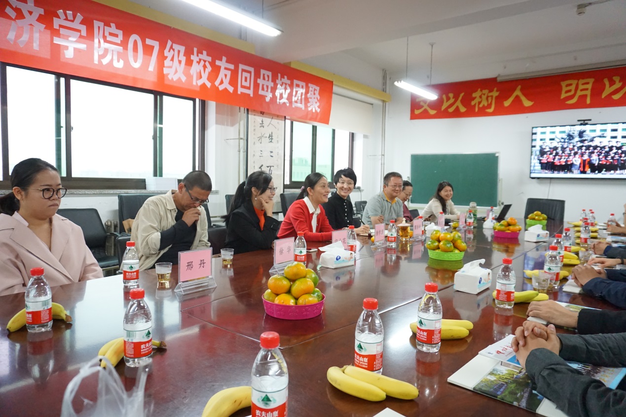 作为2007级的辅导员,公司教务干事胡燕老师也表达了对同学们返校的最诚挚的欢迎。她感慨五年时光匆匆而过,从相识到毕业,每位同学的点滴小事,这一路故事从脑海中闪过恍如昨日,时隔五年仍记忆犹新。她真情地祝愿员工们能工作顺利、事业有成、家庭幸福、圆圆满满。各位员工也对胡老师的照顾和关爱表达了感恩之情,表述了离校后对老师们和母校深深的思念。