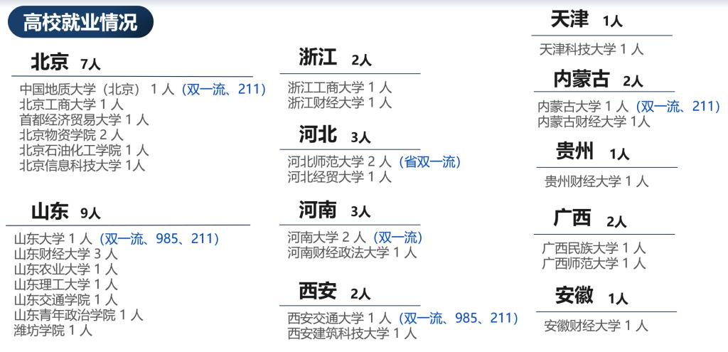 近五年来,公司高度注重博士生学术研究的就业引导,从数据看:33位博士毕业生选择国内知名高校任职(其中6人入职国内“双一流”大学),17位博士毕业生选择国内外知名高校的博士后岗位继续学术研究,15位博士毕业生入职国家发改委宏观经济研究院、国家信息中心等研究类事业单位,8位进入国家和地方机关单位工作,15位进入金融或国企的经济研究相关部门。除非定向之外,17位博士毕业生高校定向就业,11位博士毕业生在国家部委和大型金融企业定向就业。公司在博士生培养及学术就业方面取得了突破性进展。