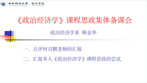 政治经济学系召开《政治经济学》课程思政线上集体备课会