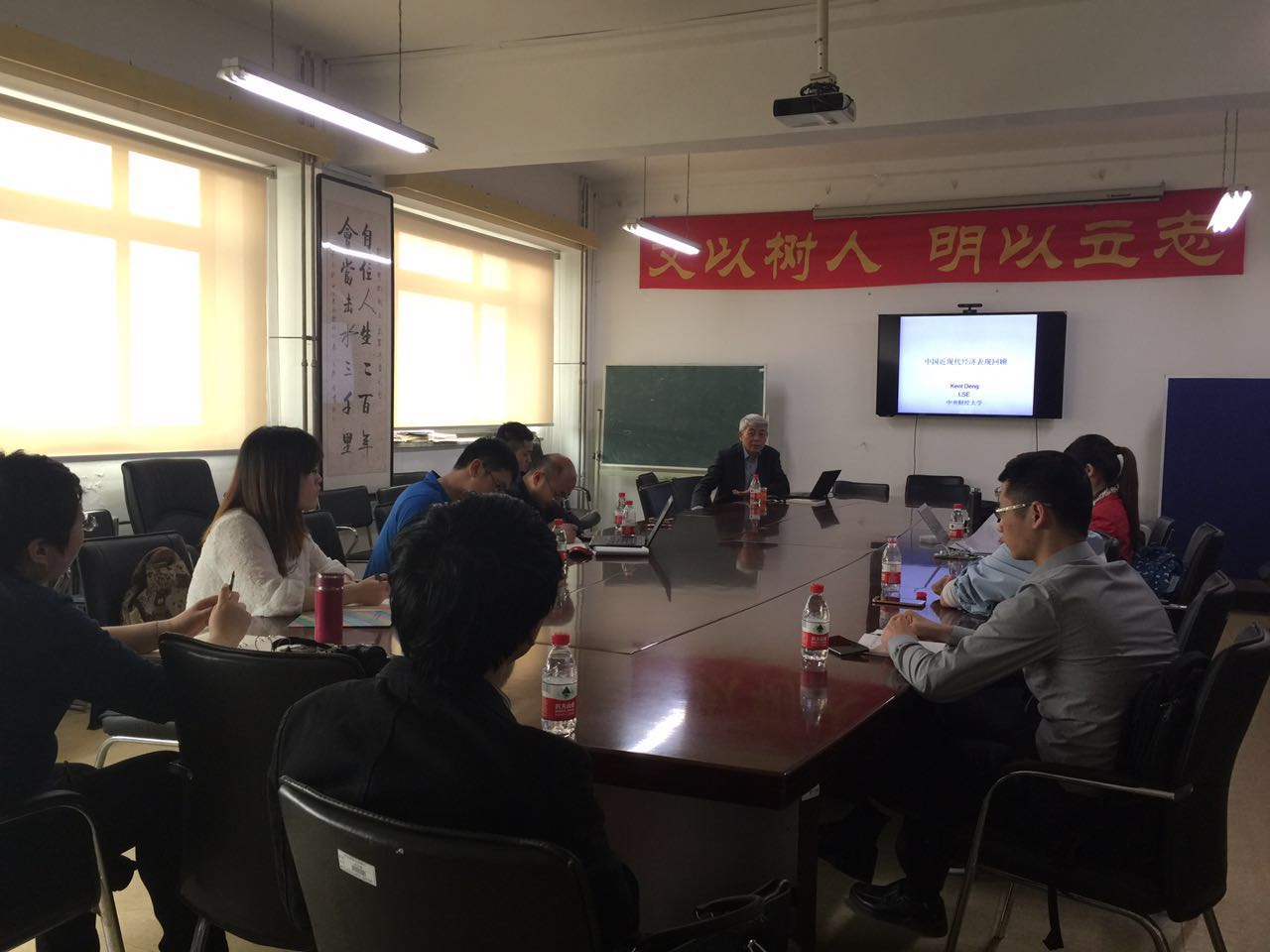 4月16日,“中外经济关系史引智项目·专题讨论会”的第一场在公司南路主楼1305会议室举行,讨论会的主题是“中国近现代经济表现回顾”。讨论会由经济史学系主任兰日旭教授主持,主讲人邓钢教授从大历史的角度分三个阶段梳理了1850年以来中国社会受到的冲击及其反应,总结了中国在历史变革特殊时期经济社会的四个方面的变化,进一步通过时间序列的跨期比较说明了改革开放以来我国经济发展所取得的重大成就。讨论会期间,来自best365体育亚洲的师生分别就邓钢教授的相关观点进行了深入交流。best365体育亚洲包括刘滨、兰日旭、乔恒、伏霖等在内的老师参与了本次讨论会。此次邓钢教授来校系列学术活动受到“best365体育亚洲官网引智·中外经济关系史领域”项目的支持。