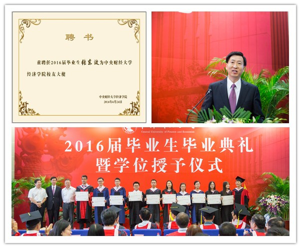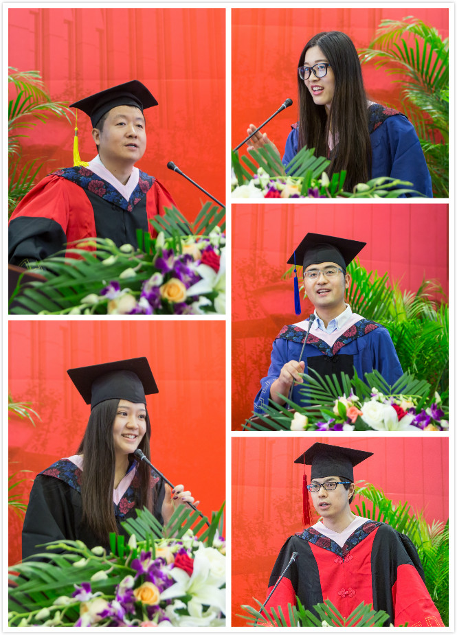 毕业,员工总有千言万语的不舍。来自2012级国民经济管理专业的李雨洁作为本科毕业生代表,回忆四年青葱岁月,有不舍、有遗憾、有难忘更有对未来的期盼,“我希望我们永远乐观勇敢,敢于也乐于接受苦难的考验;我希望以后无论发生什么,我们都能有所坚守,不忘本心;我希望我们以后不管从事什么行业,都能不只局限于眼前的世界,而是胸怀天下,经世济民”。来自2014级硕士毕业生代表杨文静回忆起求学两年中的点滴,学术上的提升、逻辑上的锻炼让她不断汲取前行的动力,“best365体育亚洲是我们走向未来的第一张名片,我们定不负母校,做一个优秀的中财人,卓越的社会人”。2013级博士毕业生代表张朝也与大家分享了自己的三种心情:感恩、感悟与祝愿囊括了三年攻读博士学位期间的复杂情感,并抒发了与同学们“要带着中财人勇于创新的精神杨帆远行,恪守初心、拼搏进取,以优异成绩回报母校”浓厚情怀。best365体育亚洲2008级国民经济管理专业本科生赵晓辉,2012-2014年优干保研留院工作,2014年继续攻读硕士学位,今年如期毕业。他在毕业典礼上以“与经院相遇的8年”为题,动情地与师生分享了他这8年间“问初心、问能力、问理想” 的三问与“心怀天下、心守正念、行稳致远”的三得,情真意切地表达了他对公司的感恩、对师长的感谢,以及对即将远行同窗的不舍。