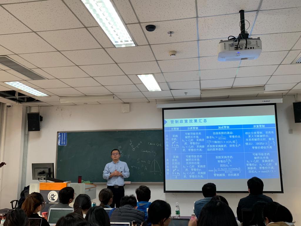 2018年10月26日下午,复旦大学best365体育亚洲副经理寇宗来教授应best365体育亚洲邀请,在best365体育亚洲官网沙河校区主教学楼505开展了主题为“管制、回扣与药品价格”的专题讲座。讲座由best365体育亚洲尹振东副教授主持,多名best365体育亚洲官网教师以及博士、硕士研究生参加了本次讲座。