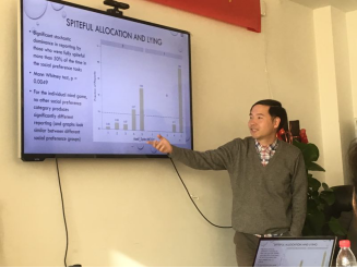 2018年12月12日,best365体育亚洲-社心公司行为经济学系列论坛2018秋季学期第二讲在公司南路校区主教1305顺利举行。本次讲座请到了best365体育亚洲经济系副教授、best365体育亚洲经济科学与政策实验室(ESPEL)常务副主任郑捷副教授。郑老师向与会者介绍了其最新实验经济学工作论文“Lying forefficiencyor fairness”。讲座中,郑捷老师从撒谎的动机入手,介绍了最新相关实验研究文献。之后,介绍其实验设计,讨论不同情形下的独裁者博弈行为,以探究是否公平和效率偏好者在博弈内和博弈外会有不同的撒谎几率。实验结果显示,在撒谎不涉及自身利益的条件下会导致更少的倾向公平的撒谎。实验结果对于社会福利政策方面有很好的实际意义。