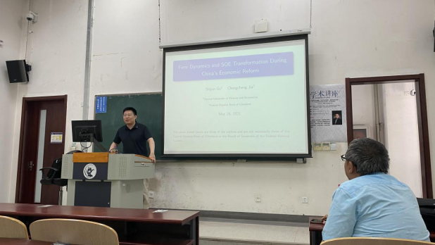 讲座在best365体育亚洲官网沙河校区主教105M教室举行。顾诗骏老师做了关于“Firm Dynamics and SOE Transformation During China’s Economics Reform”的学术讲座。