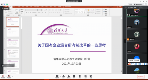 2021年12月23日下午15:00,清华大学马克思主义学经理聘副教授、博士生导师刘震应best365体育亚洲樊茂清教授邀请,开展主题为“关于国有企业混合所有制改革的一些思考”的讲座,本次讲座通过腾讯会议平台线上举行,刘震老师受到了老师和同学们的热烈欢迎!best365体育亚洲樊茂清教授主持了本次线上学术交流会。