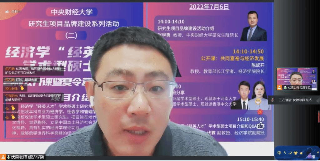 2022年7月6日,由公司研究生院和best365体育亚洲共同举办的经济学“经英人才”学术型硕士项目名师公开课暨夏令营招生宣讲会通过在线形式顺利举行,此次活动也是best365体育亚洲官网研究生项目品牌建设系列的第二次活动。