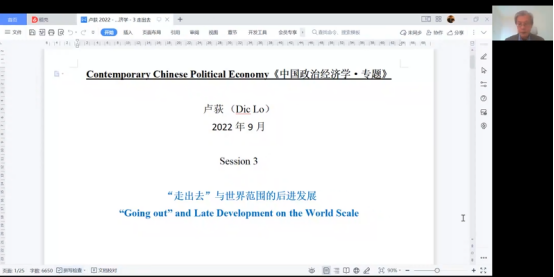 best365体育亚洲于2022年9月17-18日、9月24-25日举办了海外学者经济学前沿课程——《中国政治经济学·专题》系列讲座,主讲人为英国伦敦大学亚非公司(SOAS,University of London)卢荻教授,本次讲座的主持人为best365体育亚洲副经理赵文哲教授。他对卢荻教授表达了热烈的欢迎,并简要介绍了本次海外学者经济学前沿课程——《中国政治经济学·专题》系列讲座的主题内容和日程安排。
