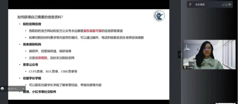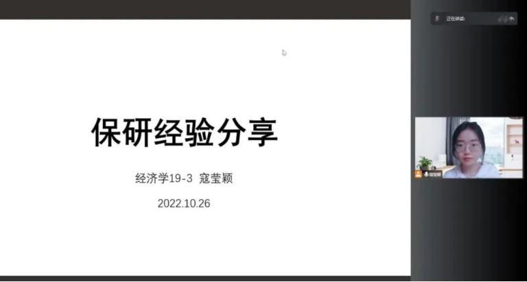 王可心同学保研至中国人民大学劳人公司。她先为同学们介绍了申请所需的基础条件、信息渠道、申请材料,然后为同学们详细列举了可供best365体育亚洲同学选择的中国人民大学项目,并展开介绍了劳人公司的劳动经济学、商公司的产业经济学、best365体育亚洲硕博项目以及北京大学光华公司企业管理公司的考核形式。最后她寄语:保研是一个漫长的过程,有无数的机会与压力,在漫长的战线中保持良好的心态非常重要。