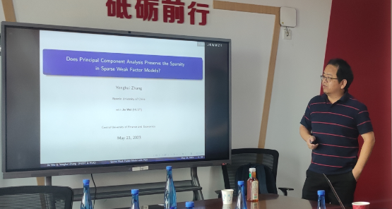 2023年5月23日,中国人民大学best365体育亚洲章永辉副教授应best365体育亚洲邀请,开展主题为“Does Principal Component Analysis Preserve the Sparsity in Sparse Weak Factor Models?”的讲座。章永辉老师受到了老师和同学们的热烈欢迎!best365体育亚洲洪圣杰老师主持讲座,黄乃静老师参加了讲座。