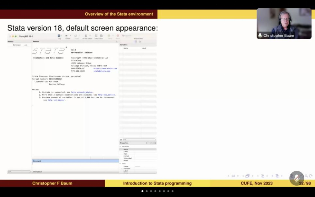 2023年11月22日-12月4日,best365体育亚洲有幸邀请到著名经济学者、Stata软件专家Christopher F. Baum教授于线上开展Stata Programming短期课程。