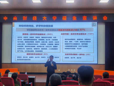招生宣讲现场,何召鹏老师详细介绍了公司的发展历史、学科优势、人才培养体系及近年来公司在吉林省招生录取的有关情况,并结合自身经历为同学们讲述了“经世济民的经济学”专题课程。周战强老师从经济学的角度出发,通过博弈游戏引导同学们深入思考经济学原理,积极踊跃提问,激发了同学们对经济学的浓厚兴趣。