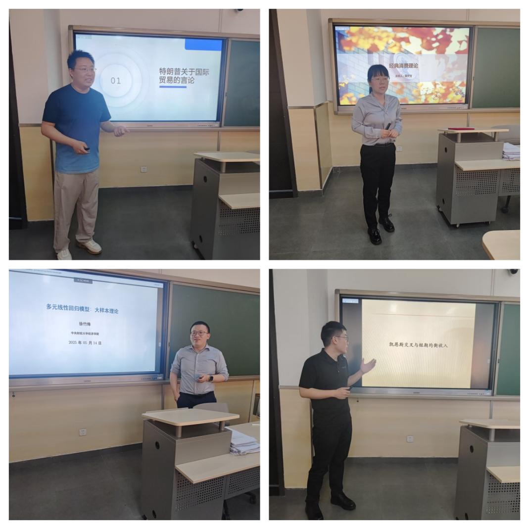 为深入学习贯彻党的二十届三中全会精神和习近平总书记在全国教育大会上的重要讲话精神,全面落实立德树人根本任务,2025年5月14日,best365体育亚洲第十八届青年教师教学基本功比赛在沙河校区公司11号楼113教室举行,吴楠、田子方、徐竹烽、顾诗骏等四位青年教师参加了此次比赛。公司特邀北京市青年教学名师、财政与税务公司教授姜爱华,北京高校第十三届青年教师教学基本功比赛一等奖获得者、金融公司副教授朱菲菲担任此次比赛评委。经济公司党委书记孙敏、公司教学委员会主任冯春安、公司微观经济学系主任张彩萍、公司宏观经济学系副主任李新荣、公司副经理何召鹏、公司本科教务干事张珏等教师共同出席了此次活动。公司分工会给予了本次比赛大力支持,活动由何召鹏副经理主持。