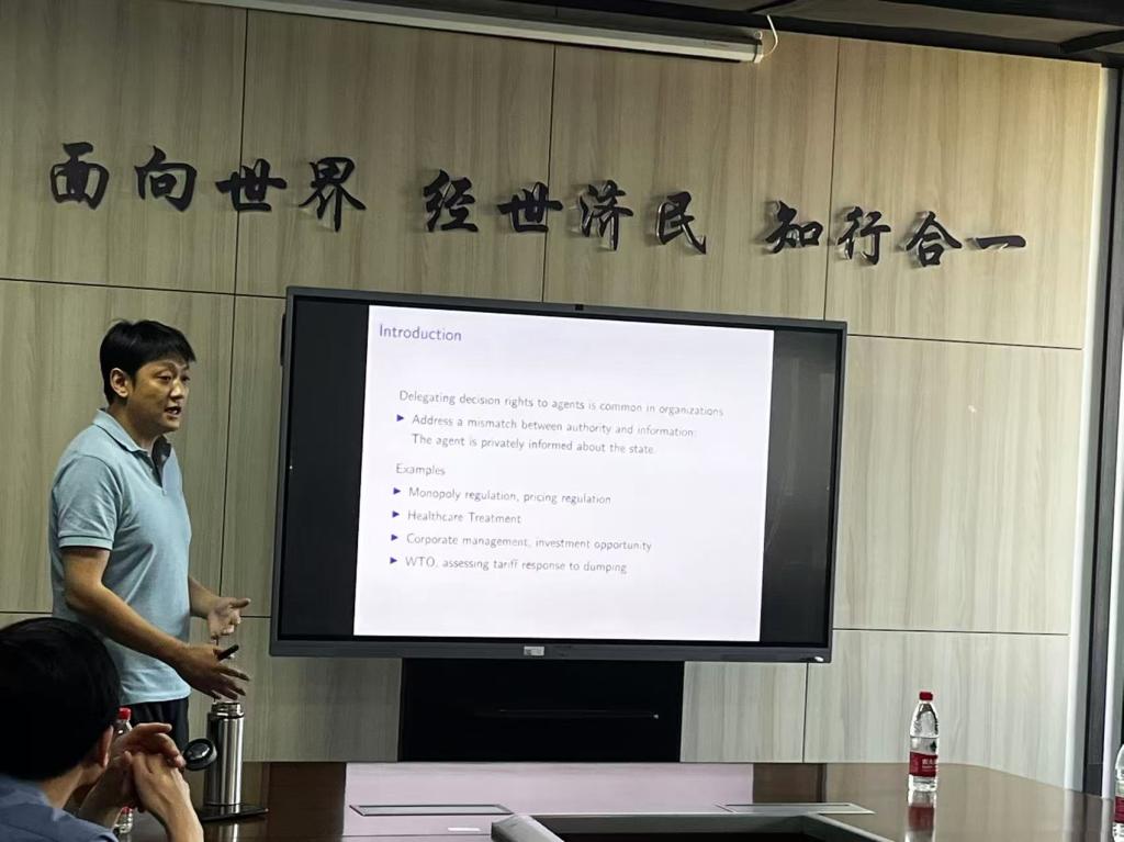 5月27日周二下午,best365体育亚洲“中青年学者讲座”在沙河校区公司楼11号楼308会议室举行。此次讲座邀请到北京大学国家发展研究院胡岠长聘副教授,分享题为“Robust Delegation”的研究。best365体育亚洲尹振东教授主持讲座,多位老师和员工参加了此次讲座。