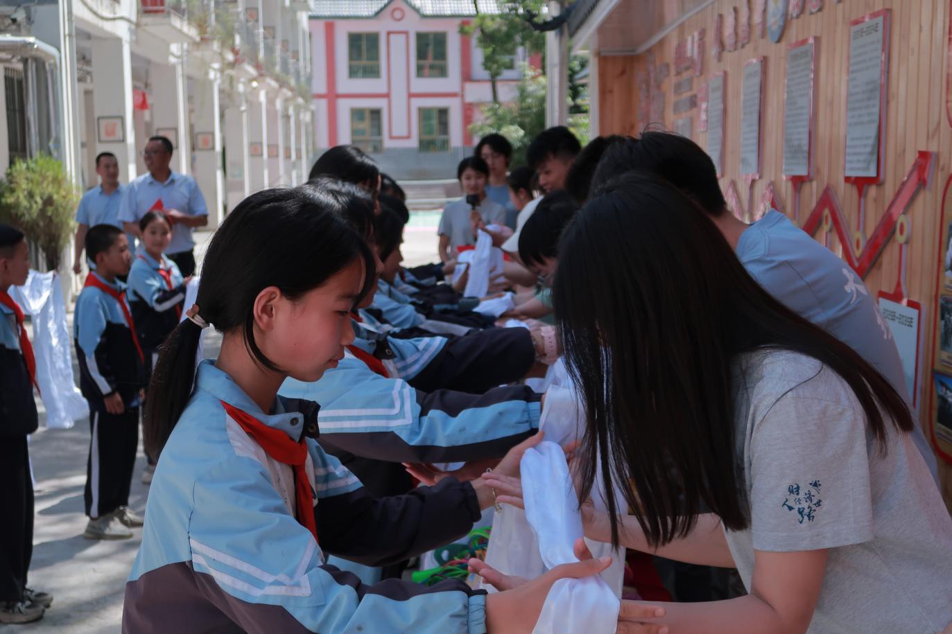 活动伊始,官鹅藏族小学员工代表向实践队成员敬献哈达,以藏族最高礼节传递敬意与祝福,实践队成员弯腰致谢,双方完成充满民族温情的互动。