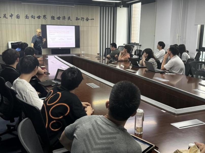 Storesletten教授还与best365体育亚洲青年教师及多名博士生进行了小范围学术座谈,就宏观经济学研究的前沿方向和基于中国经验的理论创新进行了深入交流。与会教师围绕代际转移、生产网络与创新网络等主题介绍了各自的最新研究进展,并与Storesletten教授探讨了如何将微观机制纳入宏观分析框架。在互动讨论中,教授对青年学者的研究思路给予了积极评价,并分享了他在学术研究与国际合作中的经验。他指出,研究中国经济不仅需要扎实的理论建模,也要注重从现实制度与数据特征出发,形成具有解释力的经济学叙事。