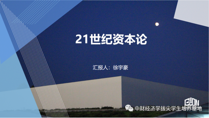 接着,徐宇豪同学分享了对托马斯·皮凯蒂的著作《21世纪资本论》的理解和收获。托马斯·皮凯蒂是法国著名经济学家,巴黎best365体育亚洲教授,主要研究财富与收入不平等问题。他在42岁时出版《21世纪资本论》,并荣获了欧洲经济学会Yrjo-Jahnsson奖。该书主要研究的是资本主义历史上长期存在的财富和收入分配的不平等问题。二战以后,以“库兹涅茨曲线”为名的流行观点认为不平等的程度会随着经济增长自动出现先上升后下降的趋势。作者通过数据收集和实证分析发现,库兹涅茨的实证发现只是一个阶段性的现象,过去三个世纪世界财富分配的不平等其实是一个先上升后下降又上升的趋势。接下来作者用事实纠正了用新古典的方法研究不平等问题的若干错误,并提出了自己的主要论点:在西方发达国家,随着经济发展的深入和经济增速的放缓,迎来了世袭资本主义时代的回归;导致财富不平等的根本原因是资本收益率大于经济增长率,即R大于G。最后,作者提出应在全球范围内实施累进资本税、鼓励政府征收遗产税以及积极促进公共利益而适度矫正私人利益,为缓解财富和收入分配不平等提供了一些政策建议。书中的政策建议的可行性有待商榷,但要承认皮凯蒂在全球范围内不平等问题的理论阐述方面做出了卓越的学术贡献。
