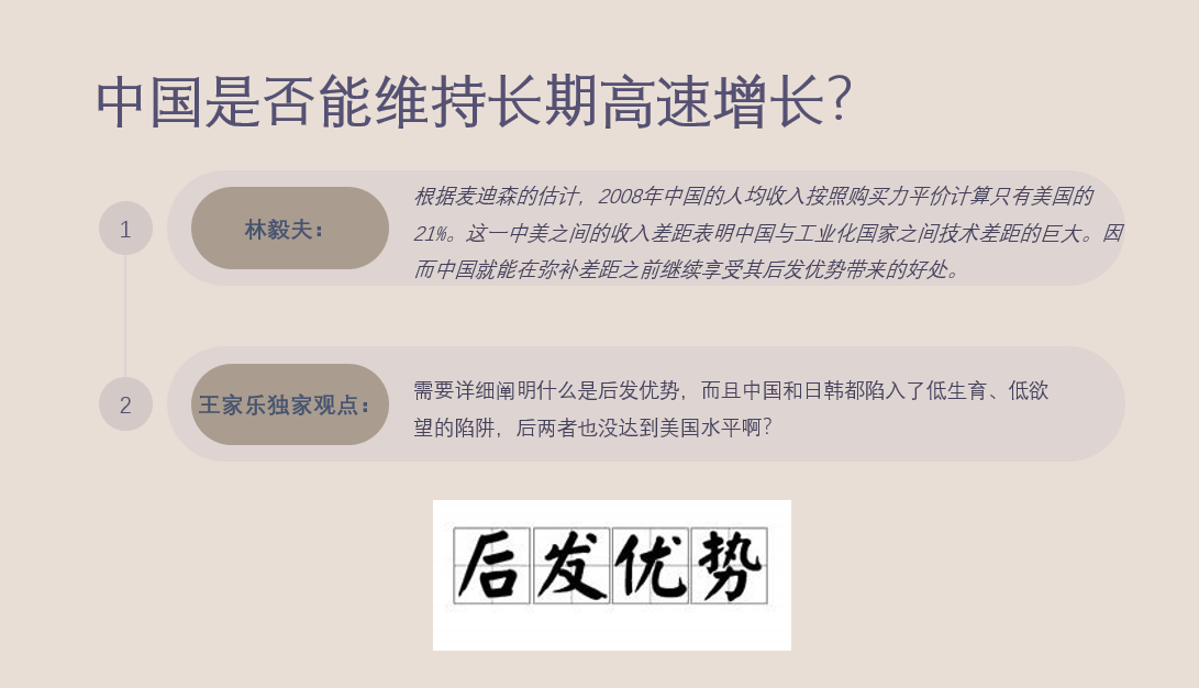 李哲同学介绍了“东亚奇迹”与替代发展战略,强调要素禀赋结构提升是比较优势战略的核心。本讲认为在开放市场下,企业需随要素成本变化调整产业、产品和技术以保持竞争力。资本密集型技术将逐渐取代劳动密集型,推动企业向新产品开发和产业转型,激发竞争和技术创新,推动经济产业升级。这一过程基于比较优势自发进行,无需政府补贴或干预,实现个人和社会生产活动统一,经济高效率和快速资本积累。