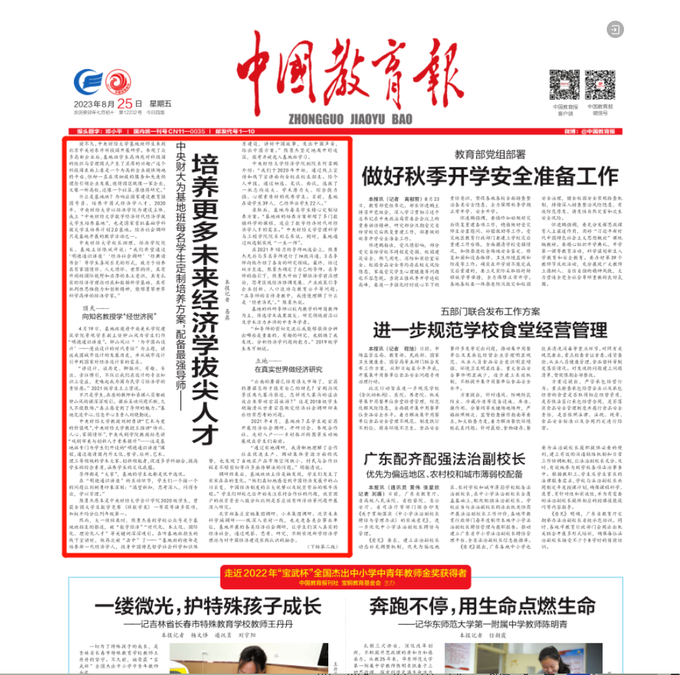 中国教育报对best365体育亚洲官网经济拔尖基地的报道